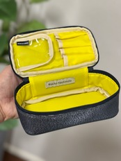 ポーチ内に小さなミラーを立てかければ、小さなメイクドレッサーに早変わり。いつでもどこでも、素早いメイクアップをサポートします。
